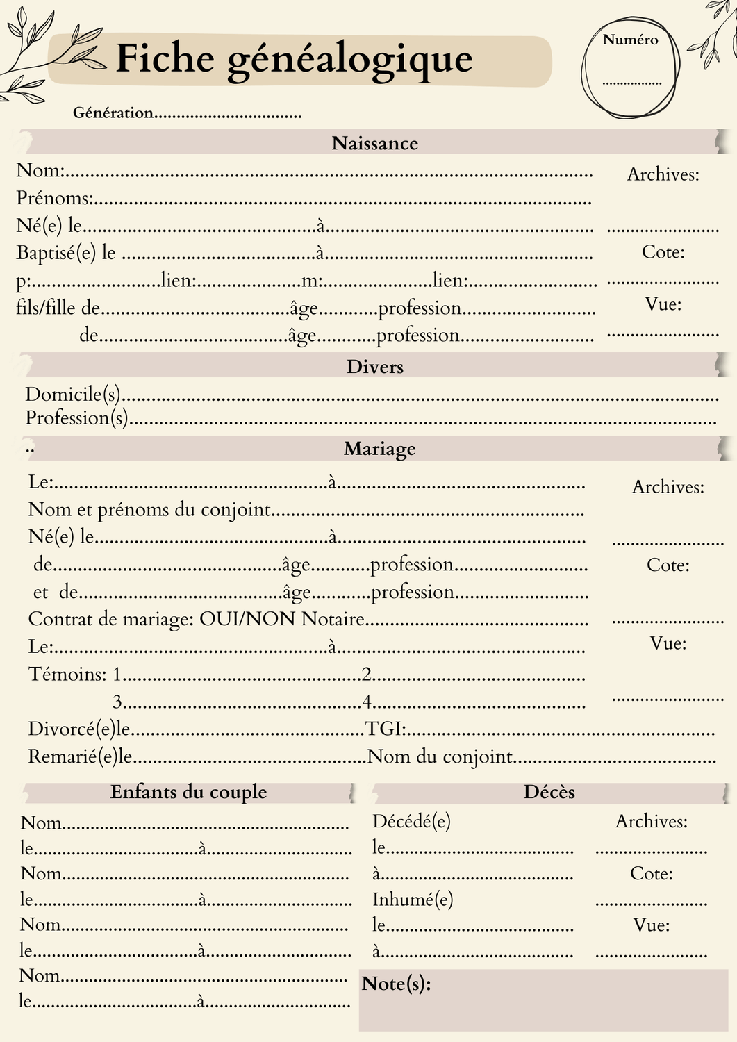 Utilisez ma fiche généalogique duplicable pour centraliser vos informations.